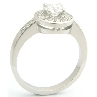 A beautiful diamond halo engagement ring in an antique style.